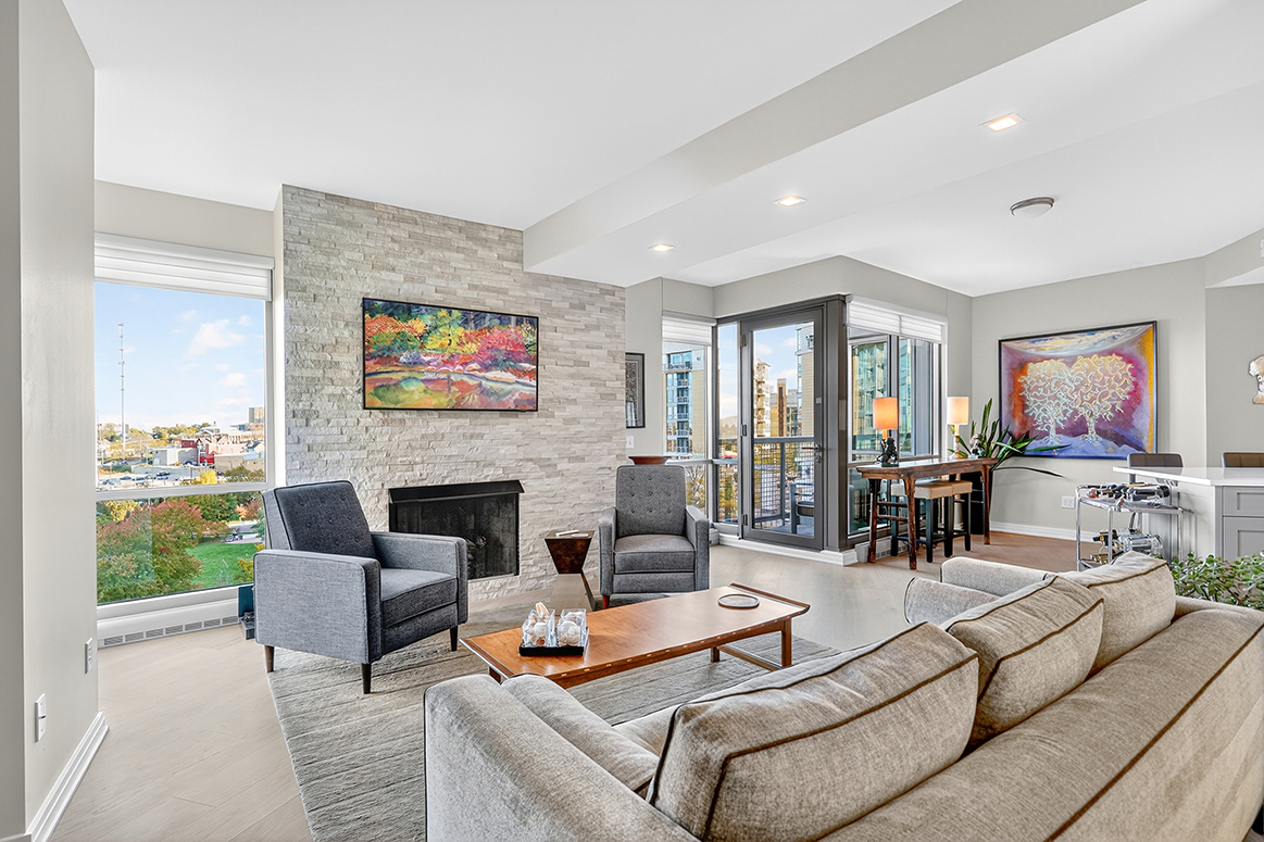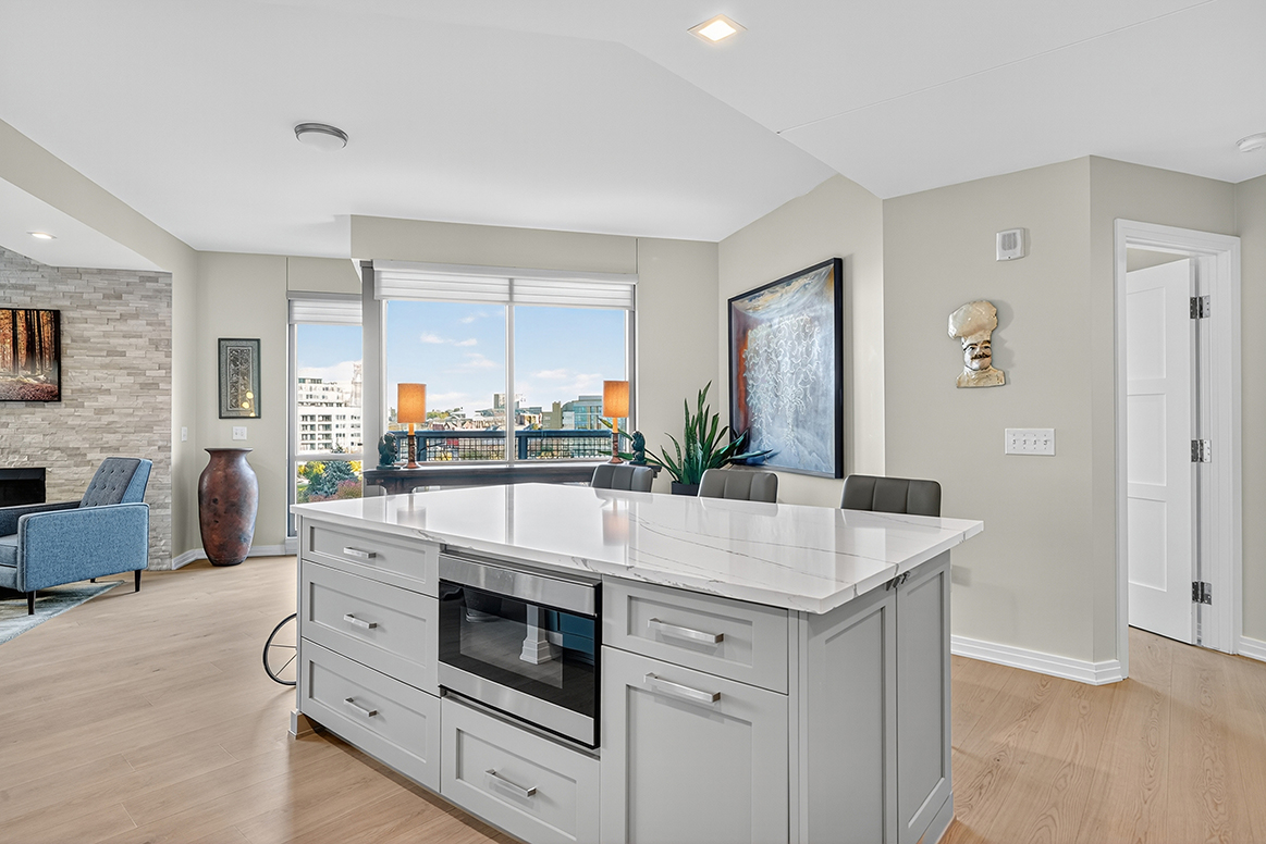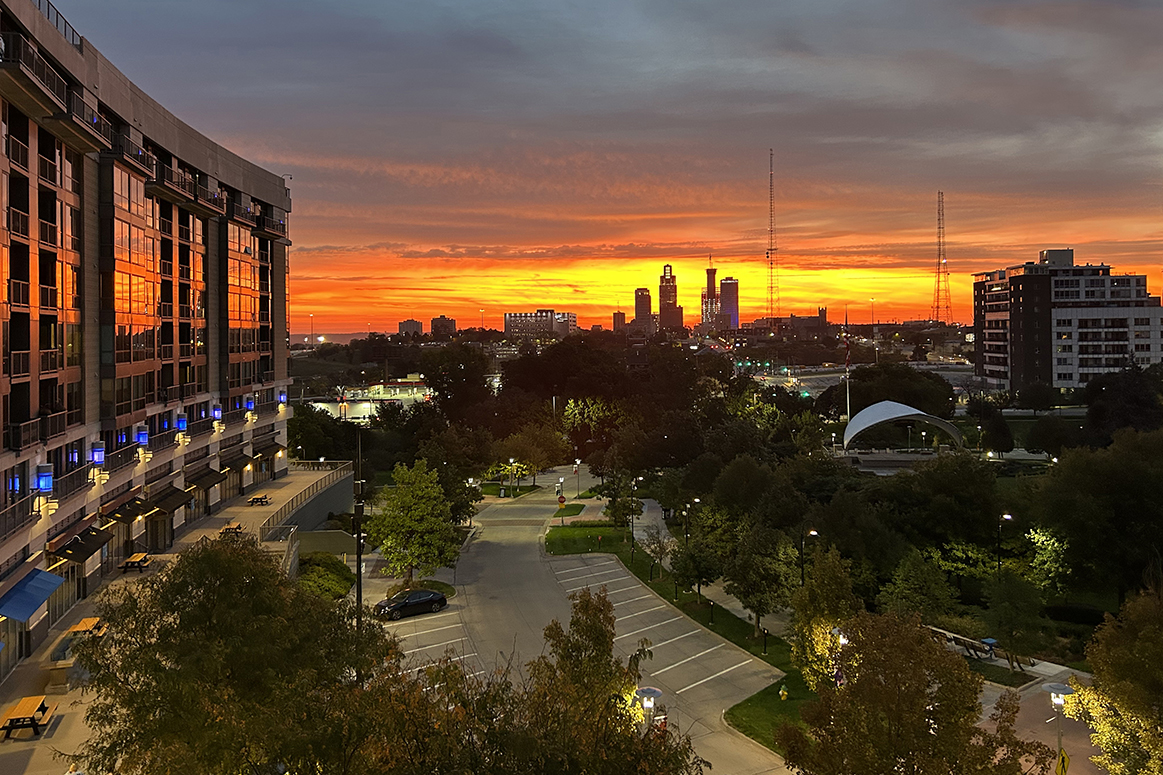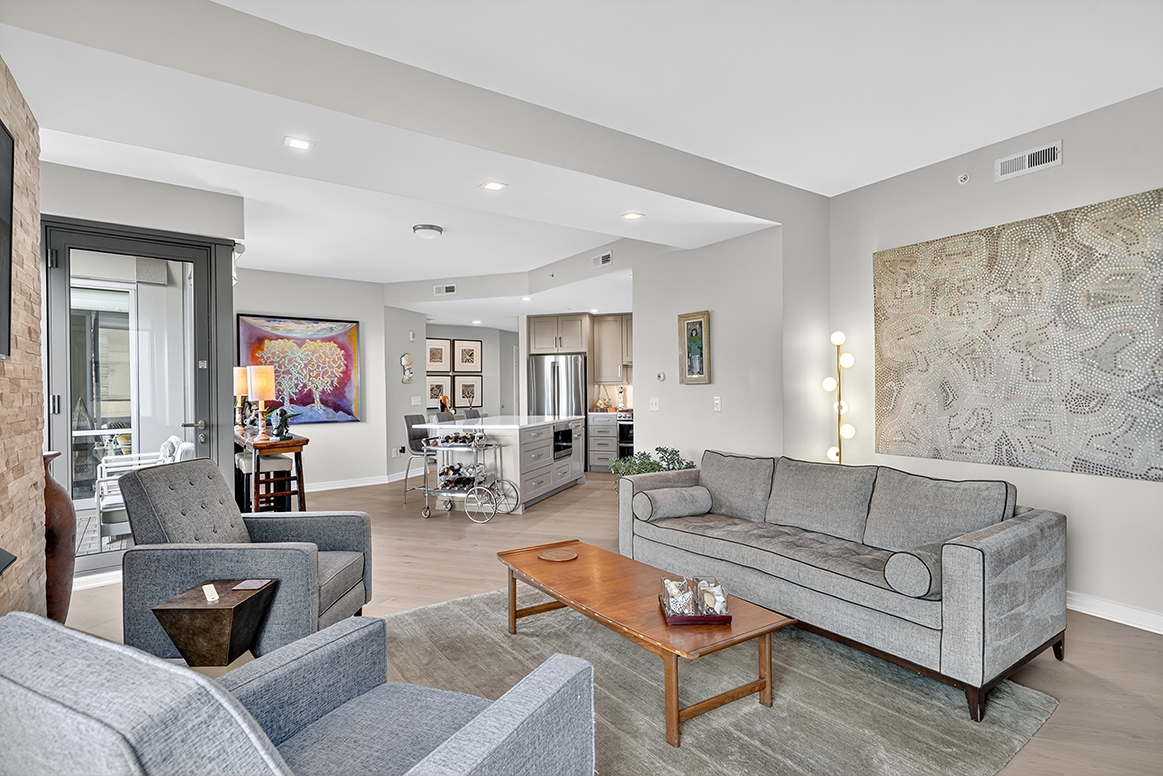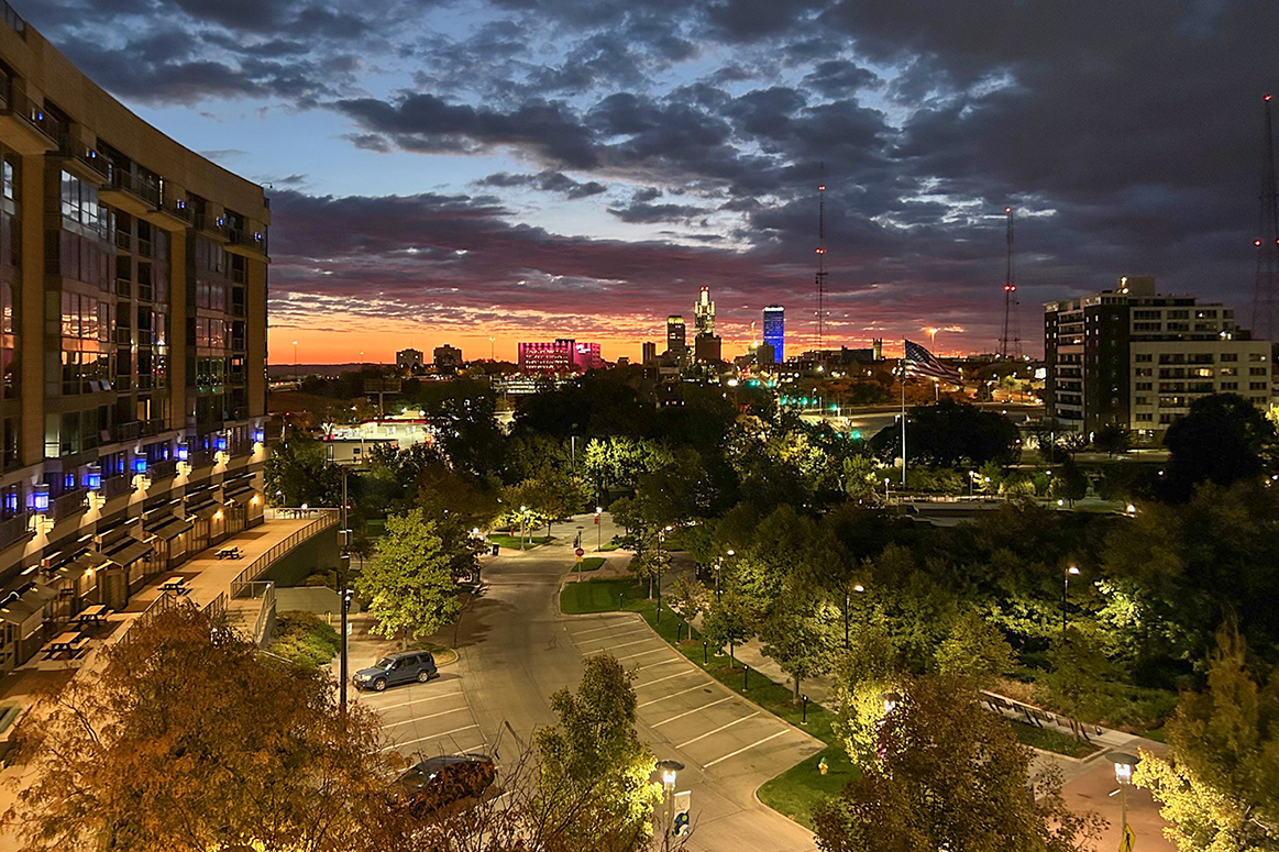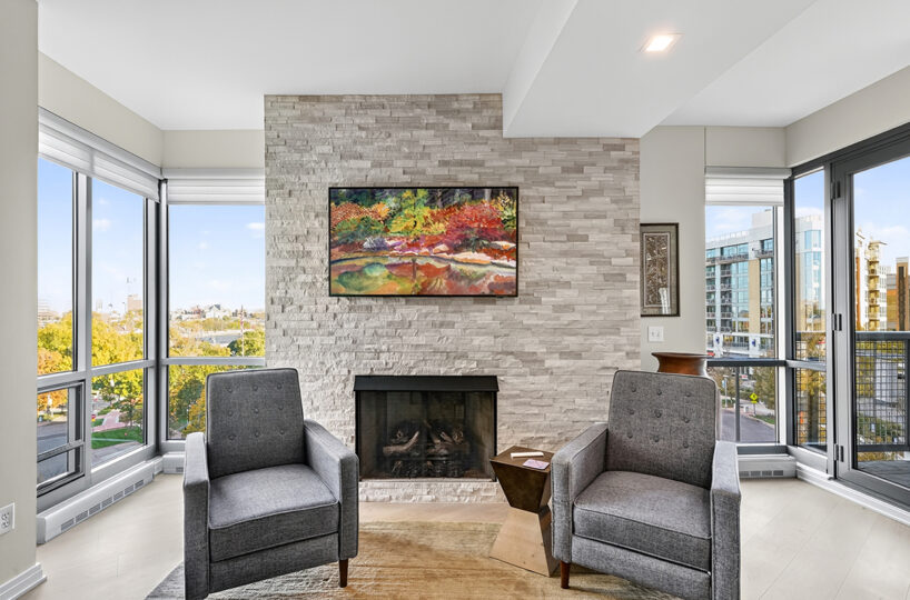 Stunning, totally remodeled luxury condo in Midtown Crossing! This elegant residence showcases a gourmet kitchen with all-new cabinetry, stainless-steel appliances, a spacious center island, and quartz countertops with matching backsplash. Floor-to-ceiling windows fill the home with natural light, enhancing the open, modern design. Professionally decorated throughout, highlights include new engineered wood flooring, a stacked stone fireplace, custom blinds, and three beautifully remodeled bathrooms. The primary suite offers a luxurious retreat with an oversized, fully-tiled walk-in shower, double vanities, and a custom closet system. Two side-by-side heated parking spaces are conveniently located across from the elevator, along with a 28 sqft storage unit. Enjoy breathtaking views of downtown Omaha and Turner Park, and take advantage of direct access to restaurants, shops, and community events. A rare opportunity to own one of the most refined and move-in-ready condos in the building!