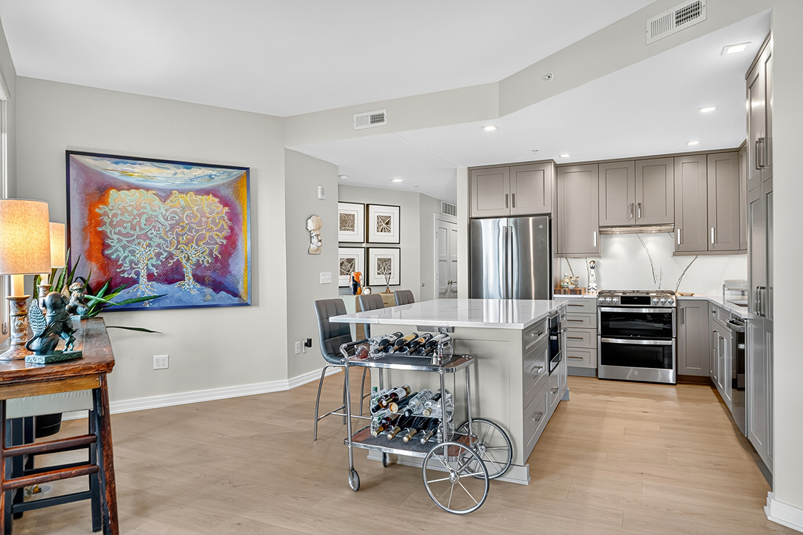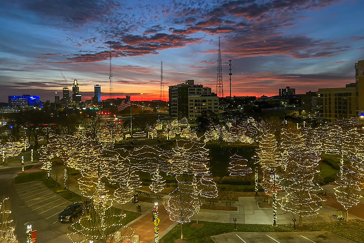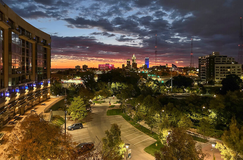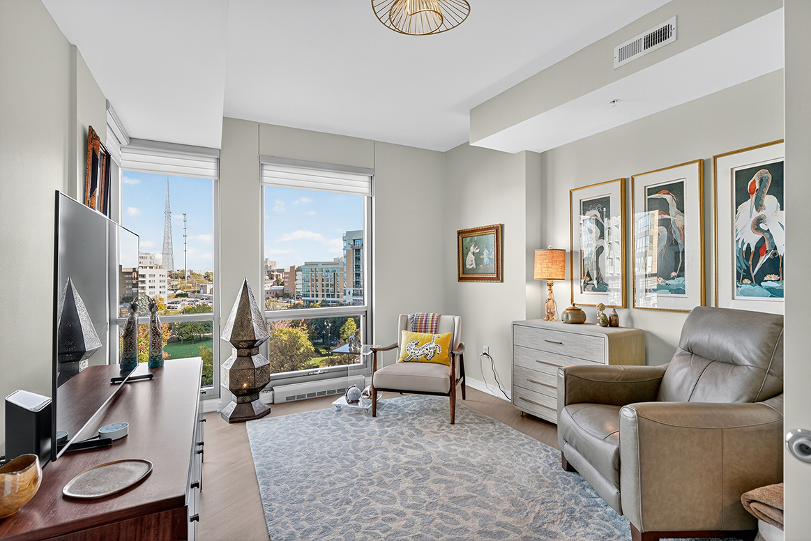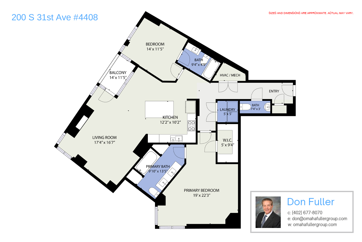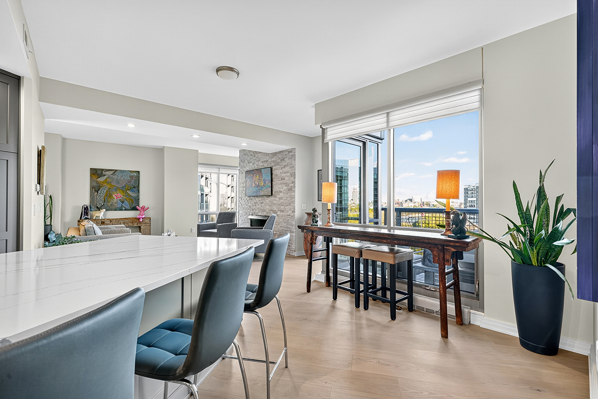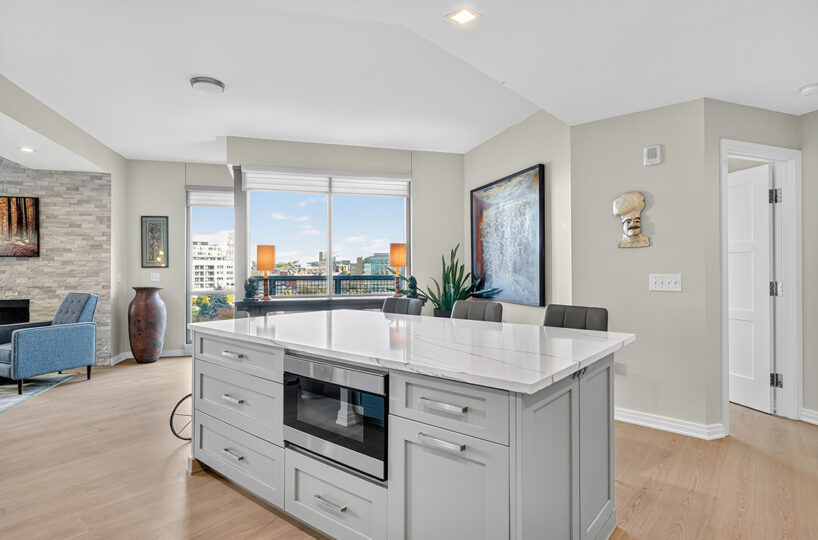 Stunning, totally remodeled luxury condo in Midtown Crossing! This elegant residence showcases a gourmet kitchen with all-new cabinetry, stainless-steel appliances, a spacious center island, and quartz countertops with matching backsplash. Floor-to-ceiling windows fill the home with natural light, enhancing the open, modern design. Professionally decorated throughout, highlights include new engineered wood flooring, a stacked stone fireplace, custom blinds, and three beautifully remodeled bathrooms. The primary suite offers a luxurious retreat with an oversized, fully-tiled walk-in shower, double vanities, and a custom closet system. Two side-by-side heated parking spaces are conveniently located across from the elevator, along with a 28 sqft storage unit. Enjoy breathtaking views of downtown Omaha and Turner Park, and take advantage of direct access to restaurants, shops, and community events. A rare opportunity to own one of the most refined and move-in-ready condos in the building!