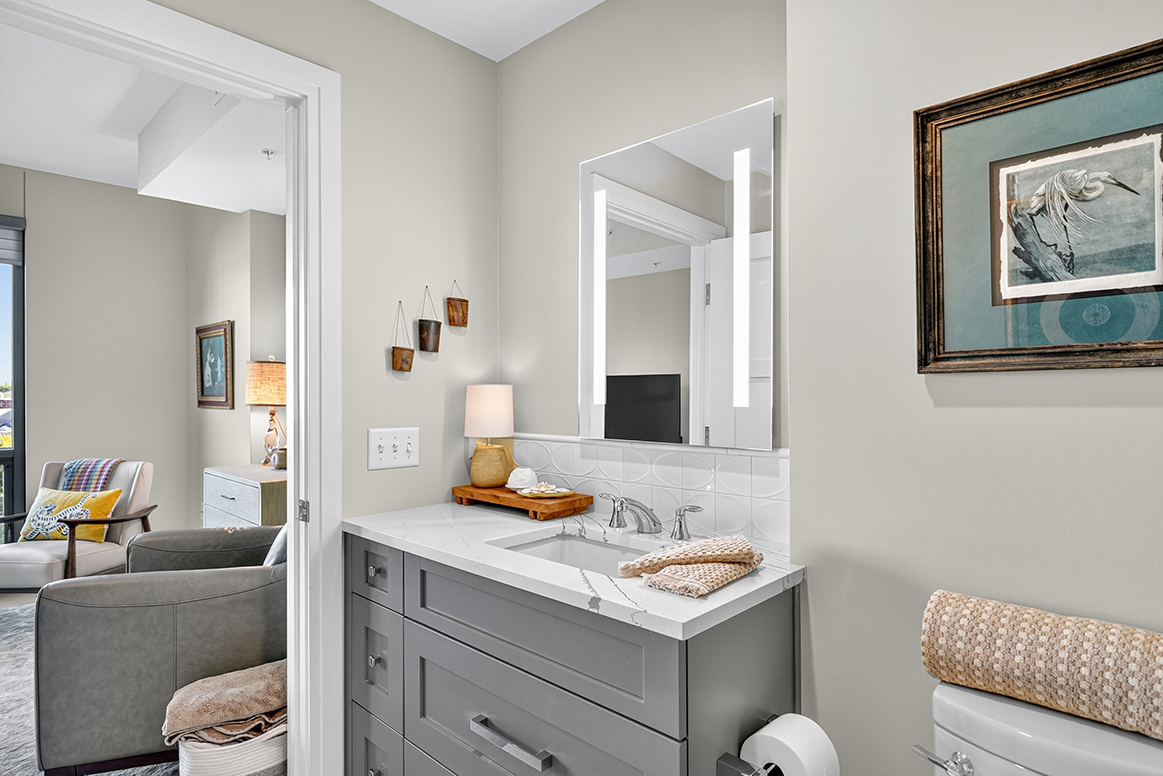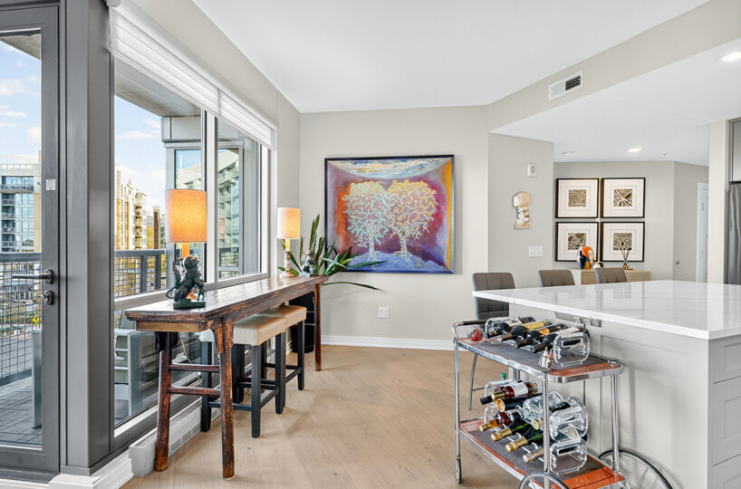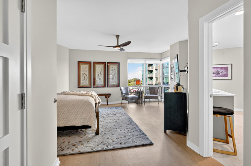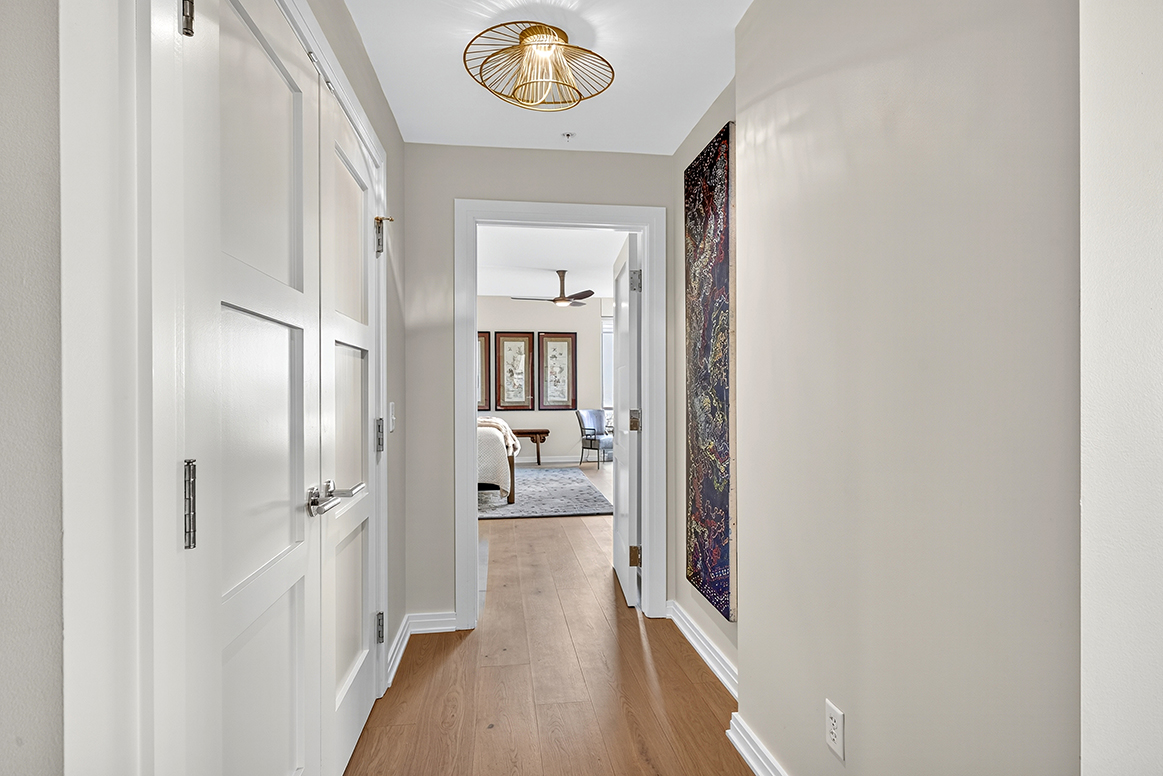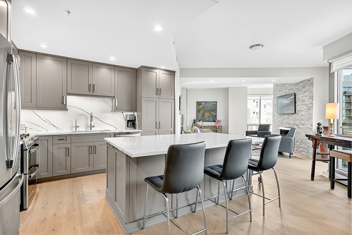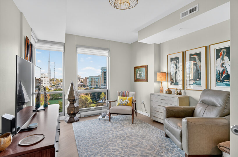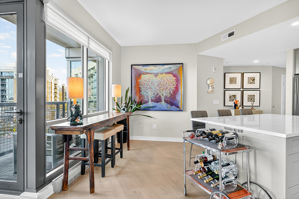 Stunning, totally remodeled luxury condo in Midtown Crossing! This elegant residence showcases a gourmet kitchen with all-new cabinetry, stainless-steel appliances, a spacious center island, and quartz countertops with matching backsplash. Floor-to-ceiling windows fill the home with natural light, enhancing the open, modern design. Professionally decorated throughout, highlights include new engineered wood flooring, a stacked stone fireplace, custom blinds, and three beautifully remodeled bathrooms. The primary suite offers a luxurious retreat with an oversized, fully-tiled walk-in shower, double vanities, and a custom closet system. Two side-by-side heated parking spaces are conveniently located across from the elevator, along with a 28 sqft storage unit. Enjoy breathtaking views of downtown Omaha and Turner Park, and take advantage of direct access to restaurants, shops, and community events. A rare opportunity to own one of the most refined and move-in-ready condos in the building!