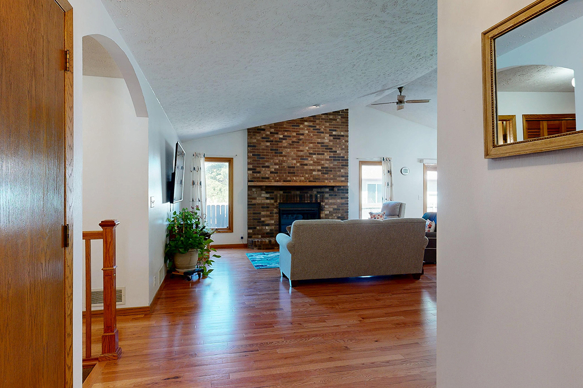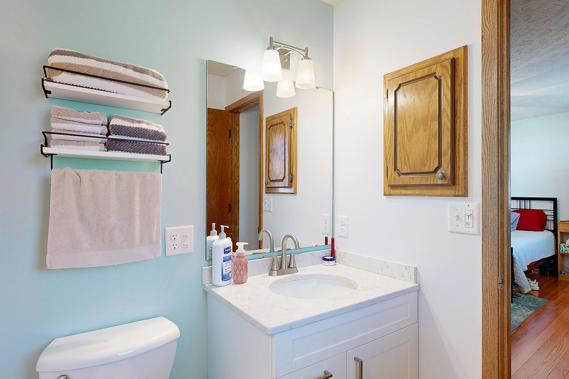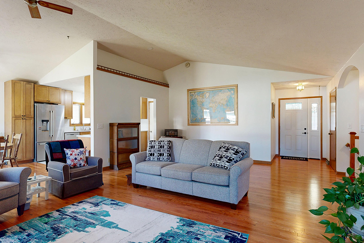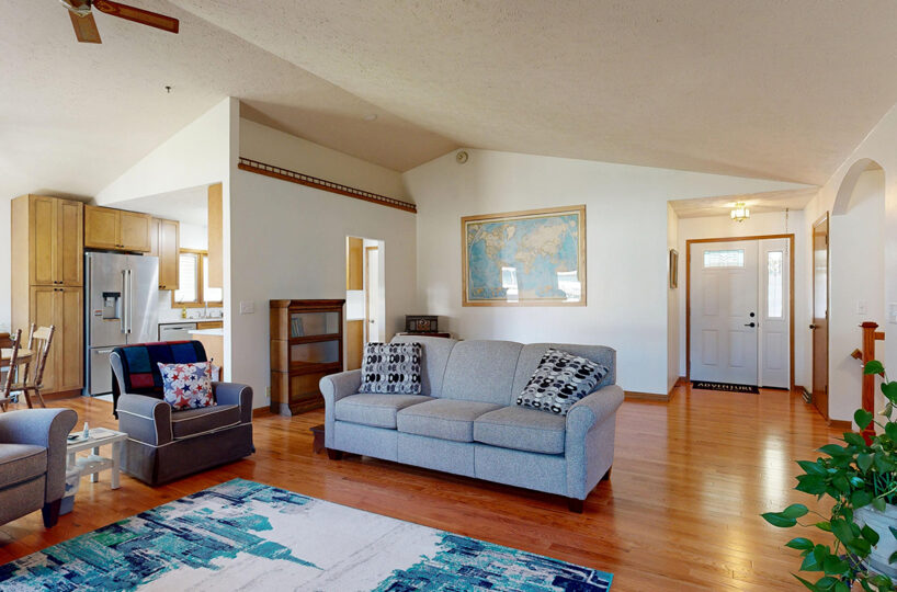 Step into style and comfort with this spacious 3-bedroom, 3-bath home, where modern updates meet wonderful functionality. Featuring newer wood flooring throughout living/dining/hallway on the main floor, this home offers a warm and inviting ambiance from the moment you enter. The heart of the home is the fully remodeled kitchen, boasting solid maple cabinets, sleek quartz countertops, and stainless steel appliances – perfect for both everyday living and entertaining. Each of the three bathrooms is well-appointed, two with updated flooring and newer vanities/countertops. Spacious, light-filled main living area and well-sized bedrooms provide plenty of room to relax and recharge. Primary suite offers you double closets and a private bath. The full basement offers a non-conforming bedroom; family room; bathroom; large laundry room, and a retro bar/rec room that is like looking in a time capsule. Outside you will find a private patio area great for relaxing after a long day. Whether you’re hosting friends or enjoying a quiet evening at home, this beautifully updated property is move-in ready and waiting for you. Don’t miss your chance to own this exceptional home – schedule your private showing today!